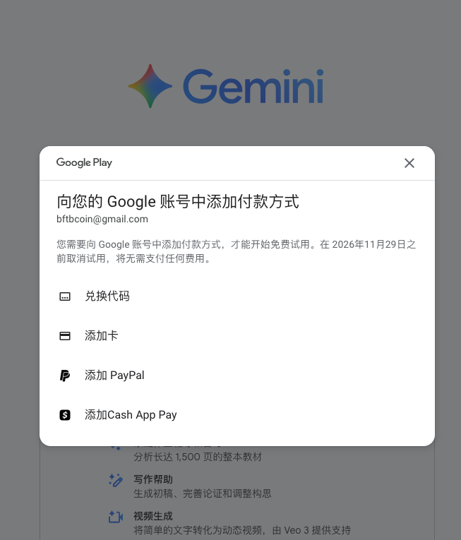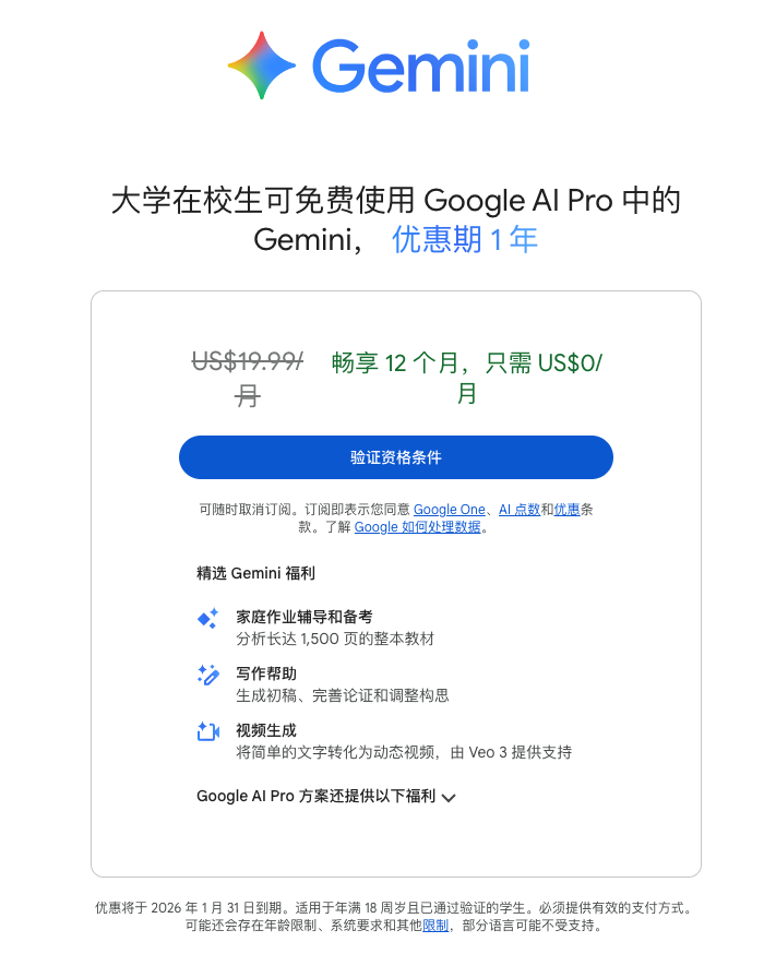 点击按钮,返回 https://one.google.com/ai-student ,这是原来“验证资格条件” 已经变成了 “畅享学生优惠” 按钮,点击按钮,开始绑定支付方式: